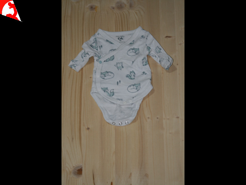 Body in cotone bianco a manica lunga con disegni volpi e natura