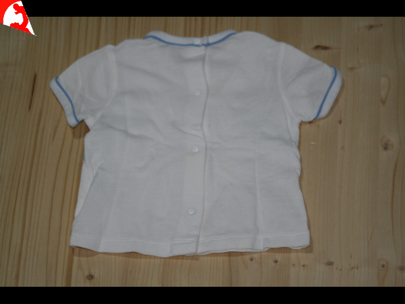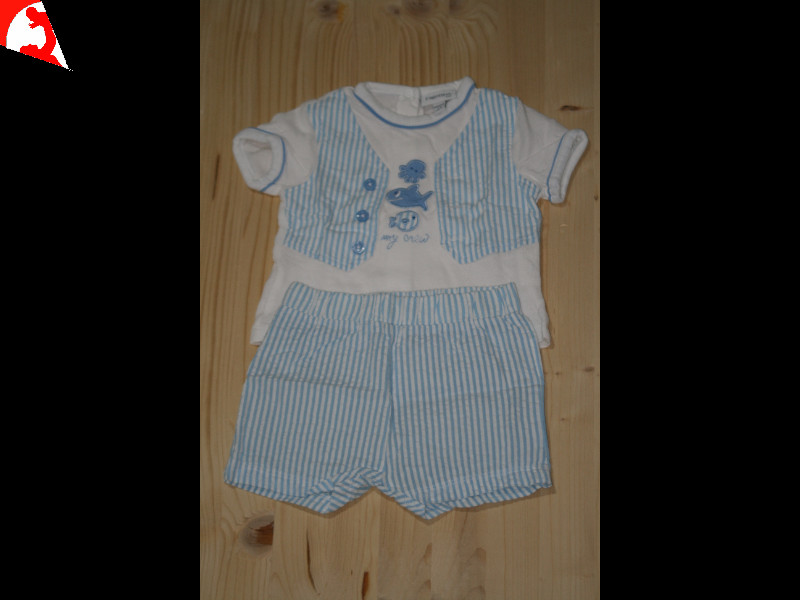Completino in cotone azzurro e bianco con animali ricamati e motivo a righe